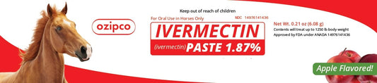 Ivermectin 1.87% Horse Paste – Apple Flavor 6.08g Tube - Deal for Horses Up to 1250 lbs (12 -Pack)